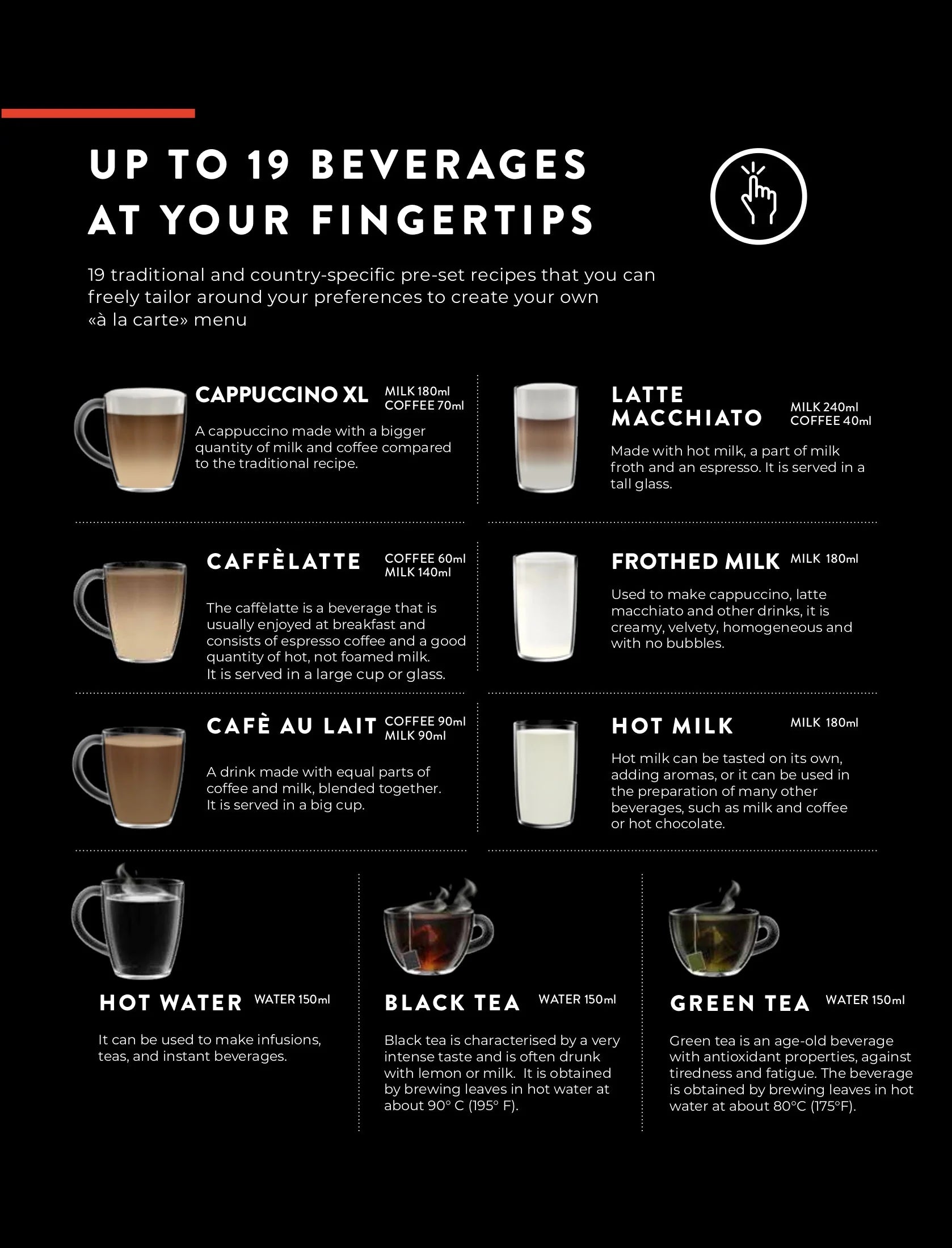 This device offers exceptional user interaction that allows for intuitive operation. With an innovative user interface, you will have complete control over every step of the coffee preparation process. Get full control over the strength of the coffee, the amount of water, the temperature and the grinding of the coffee beans to achieve just the right cup of coffee, adapted to your taste and mood.