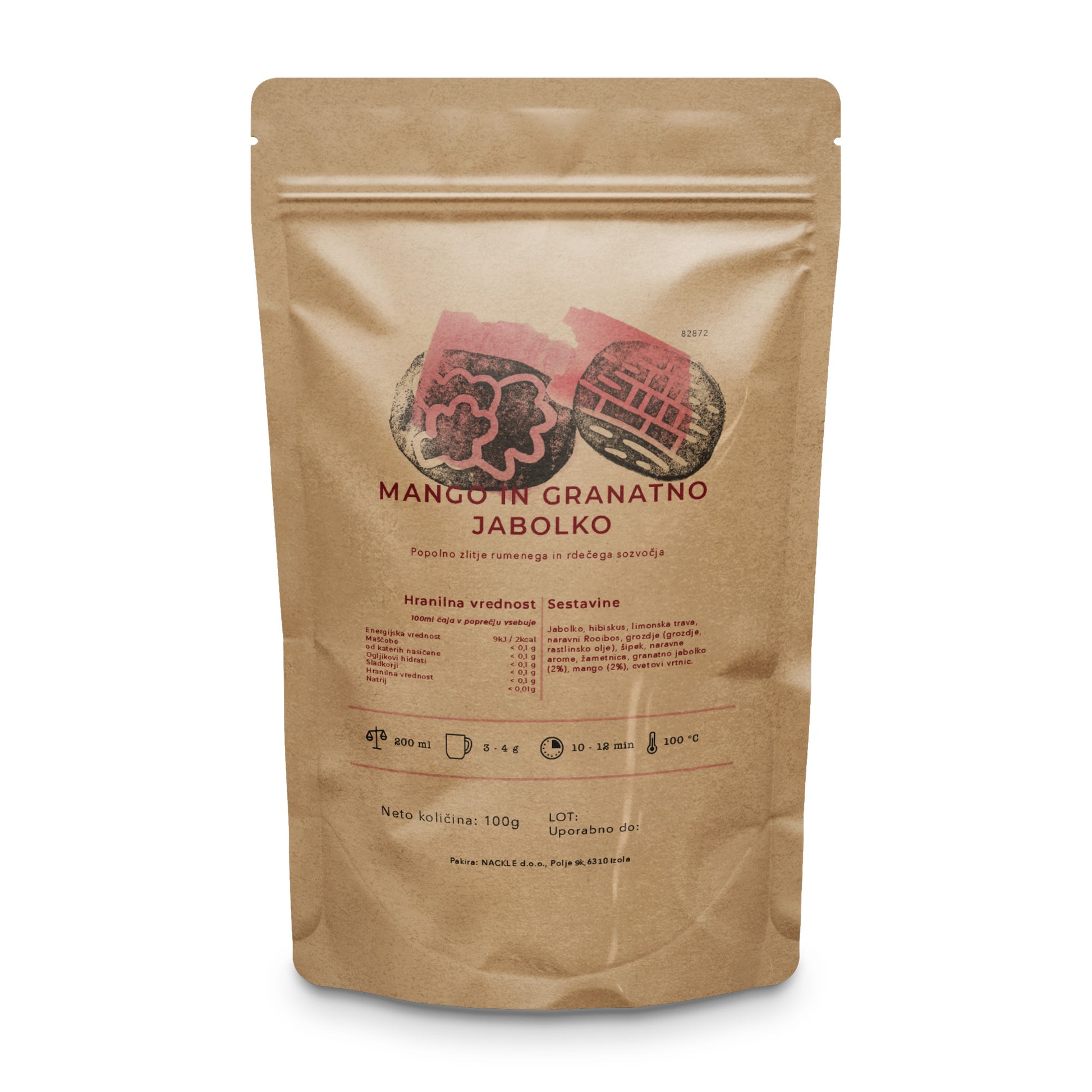 Apple, hibiscus, lemongrass, natural Rooibos, grapes (grape, vegetable oil), rosehip, natural flavors, velvet, pomegranate (2%), mango (2%), rose flowers.