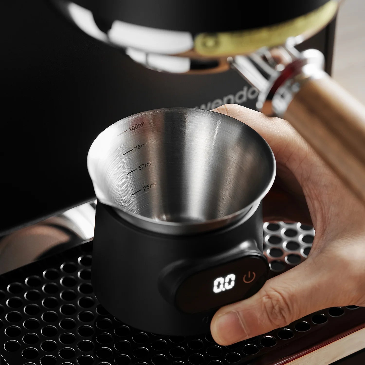 The MHW-3BOMBER ESP Coffee Scale is a compact, precise and practical scale with an integrated container, specially designed for espresso and all-purpose coffee preparation. With its minimalist design in black, it combines a scale and a collection container in one unit, allowing for precise weighing of coffee beans or liquids directly during extraction. This approach simplifies the espresso preparation process and provides better control over the mass and results in the cup.