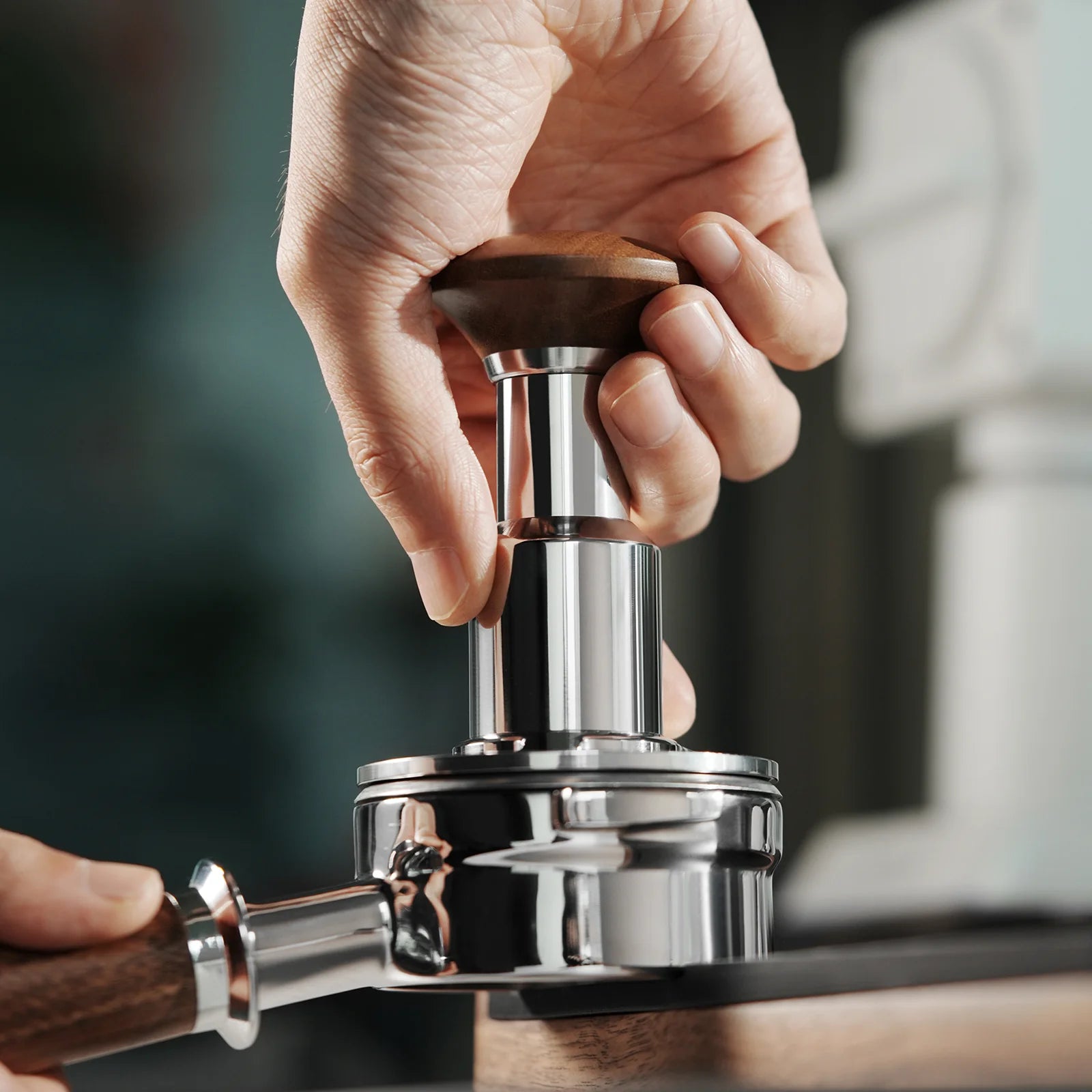 - Constant tamping force for consistent coffee layer density
