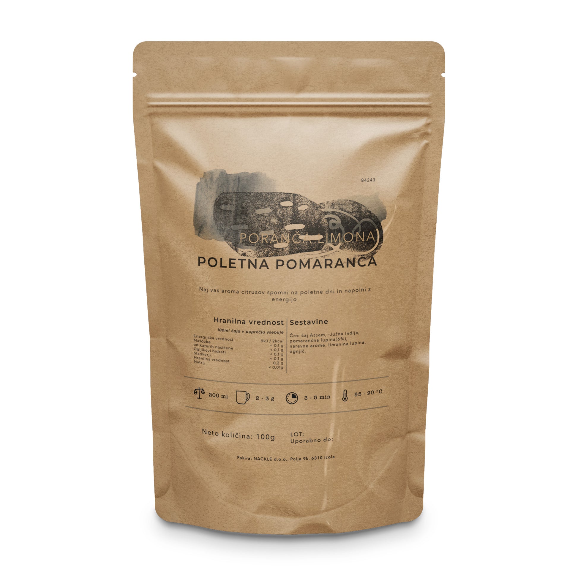 Assam black tea, - South India, orange peel (6%), natural flavors, lemon peel, calendula.