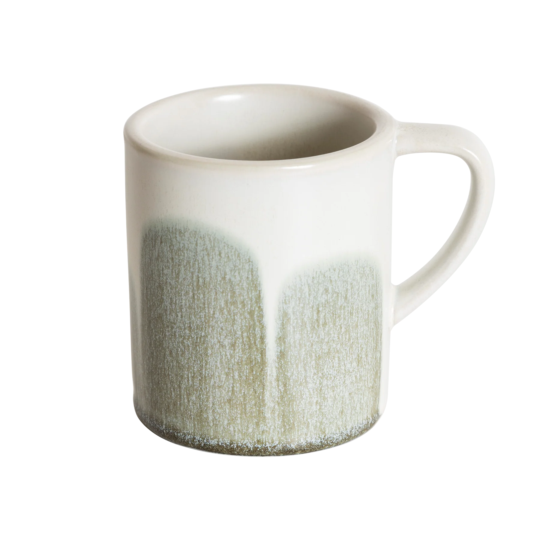 Ročno poslikana glazura v zelenem odtenku poskrbi, da je vsak kos edinstven – z nežnimi barvnimi prehodi, ki dodajo skodelici značaj in toplino. Zaobljena notranjost omogoča enakomerno mešanje kave in mleka, kar jo naredi idealno za latte art, medtem ko ergonomski ročaj nudi udoben oprijem.